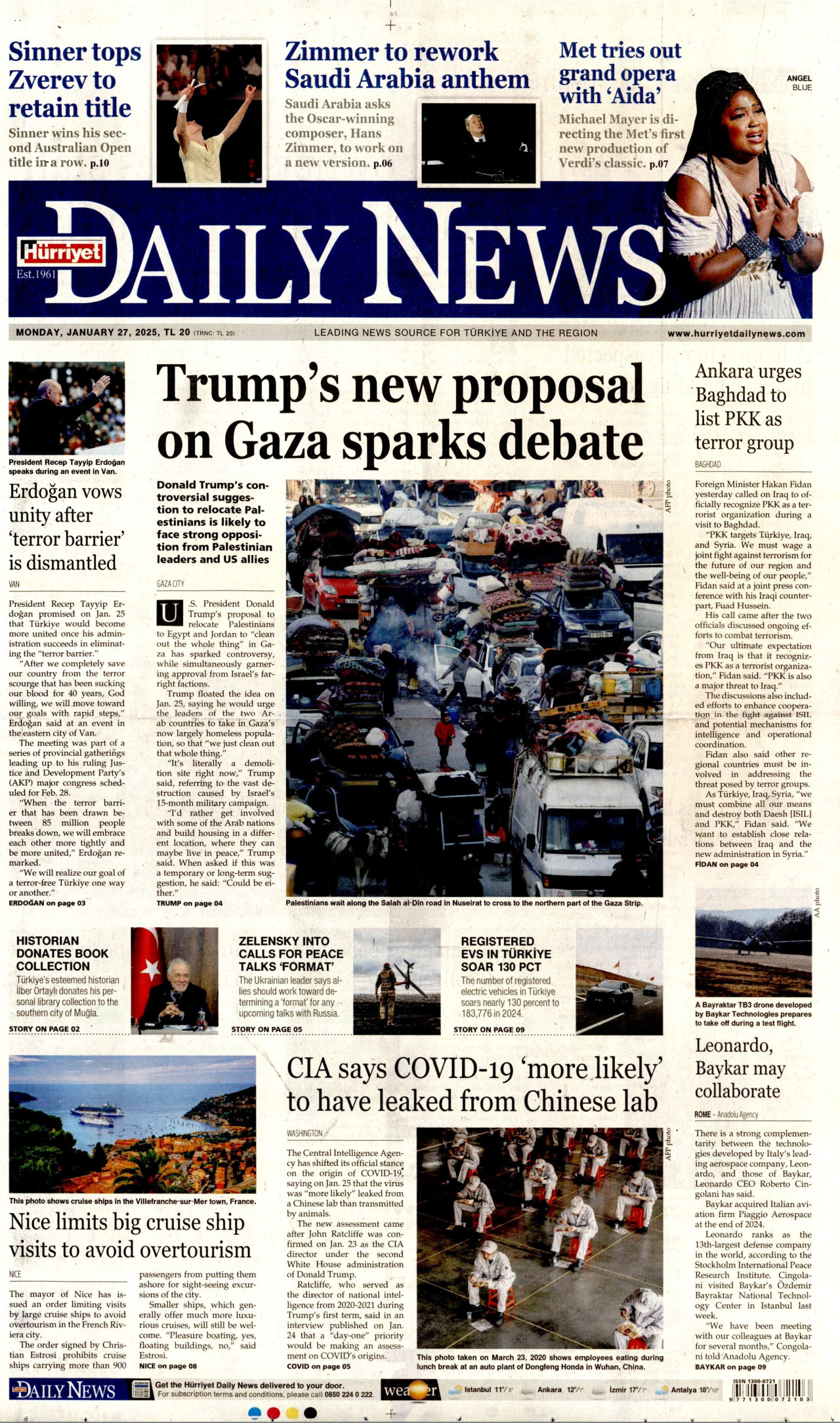 HÜRRİYET DAİLY NEWS Gazetesi 26 Ocak 2025, Pazar Günü Manşeti