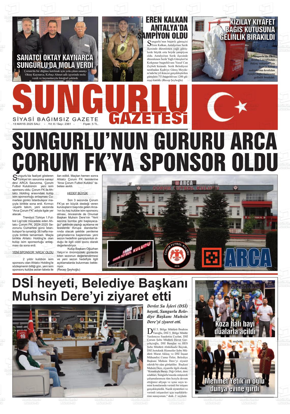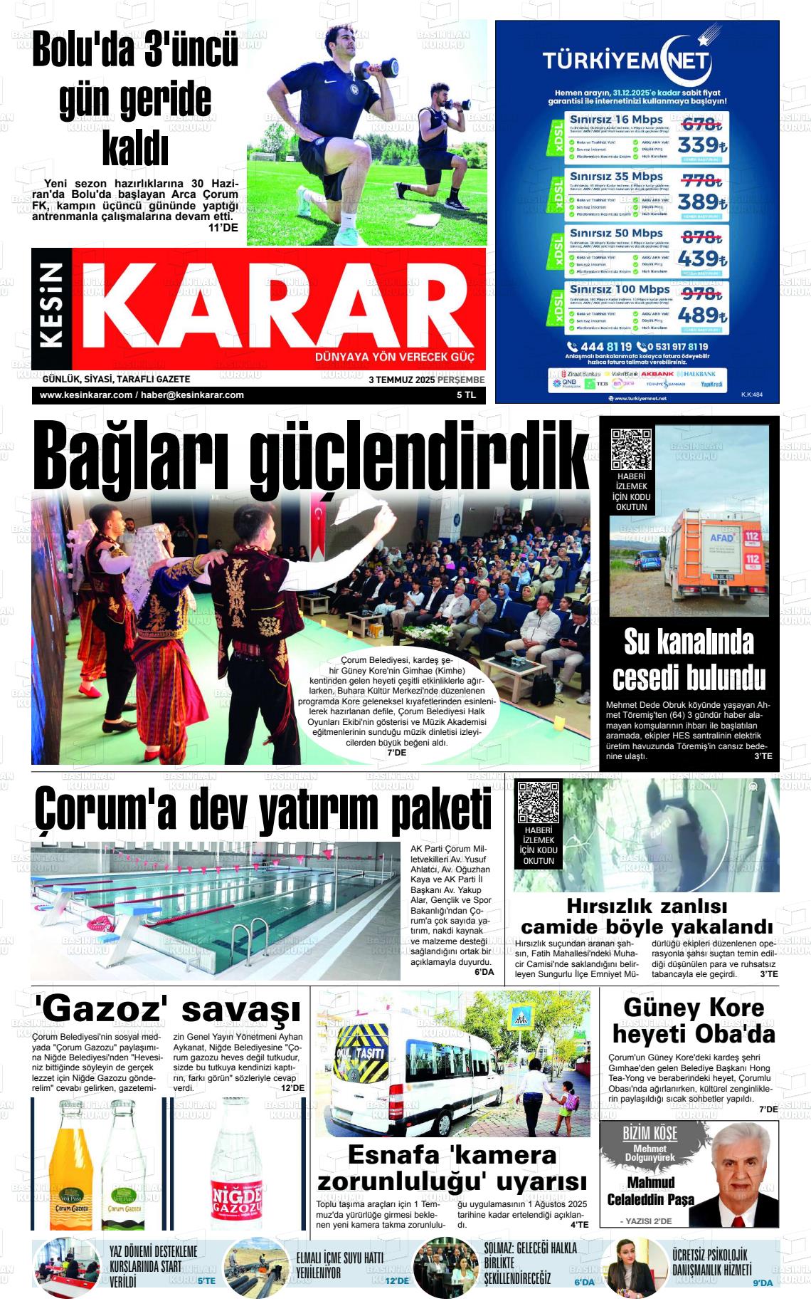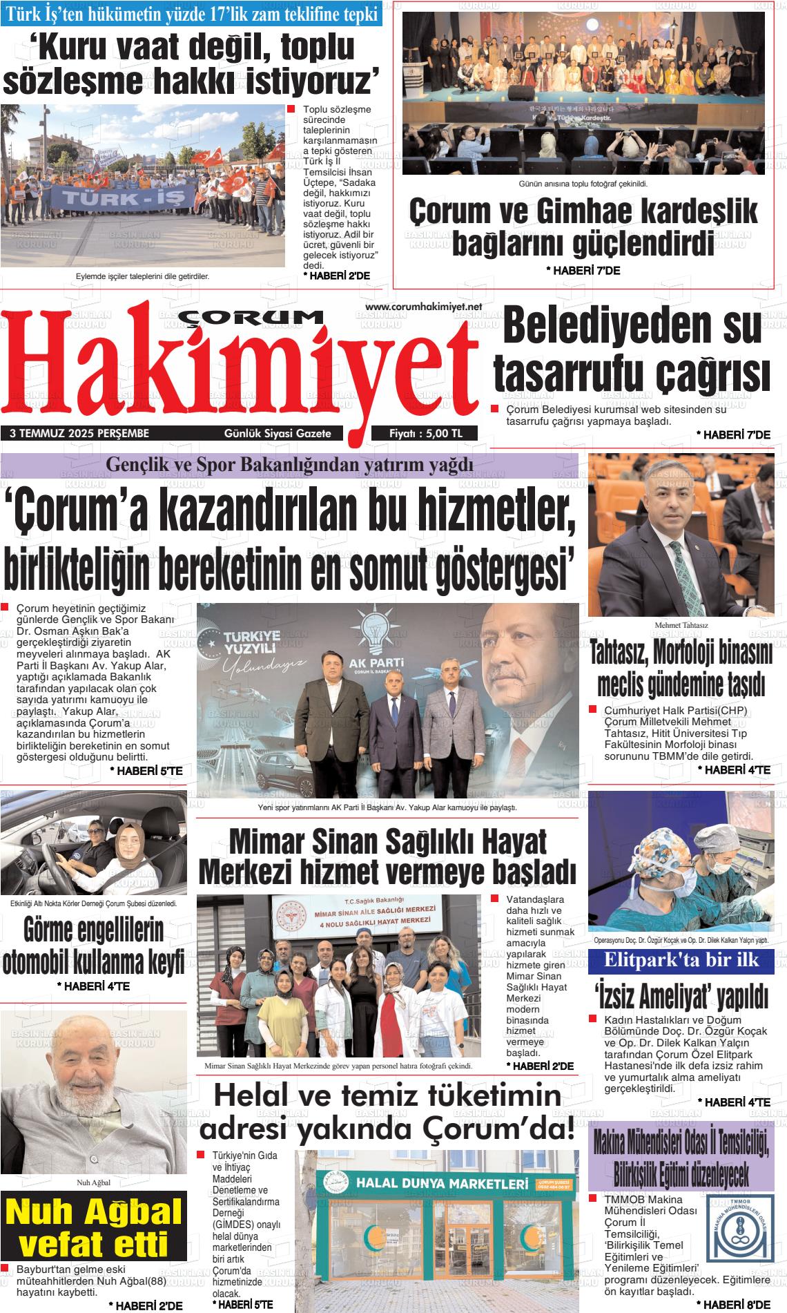 Çorum Yerel Gazeteleri 24 Ekim 2025, Cuma Günü Manşeti
