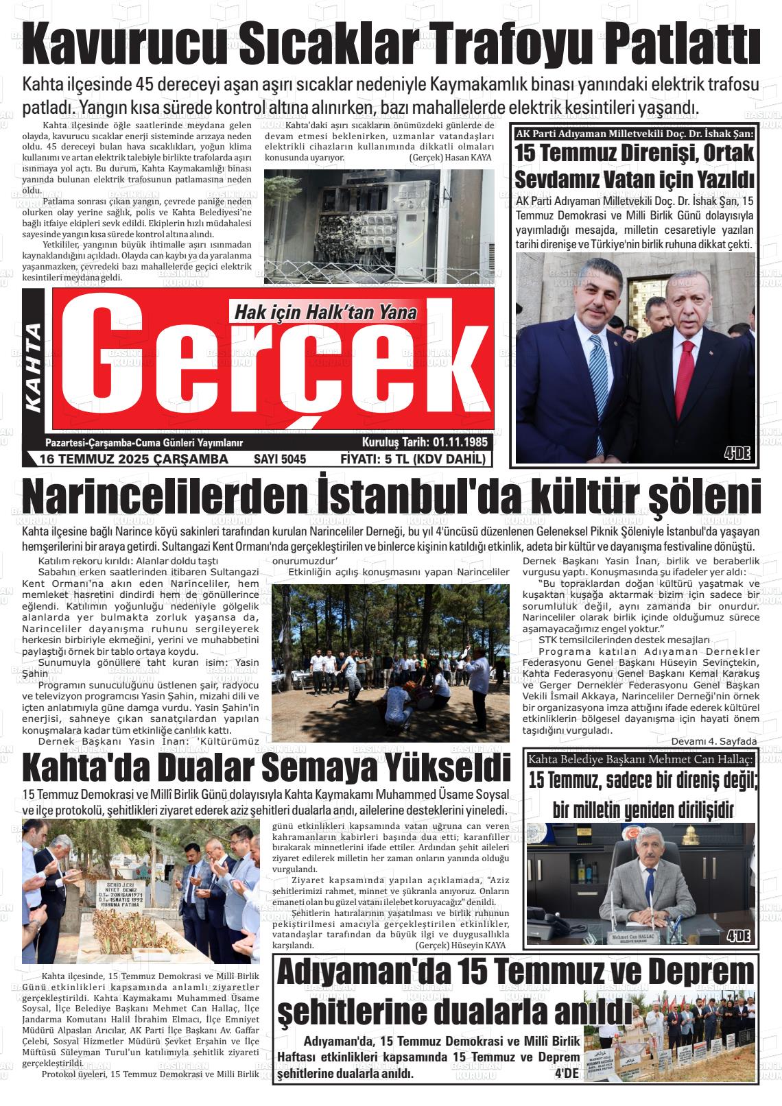 Adıyaman Yerel Gazeteleri 24 Ekim 2025, Cuma Günü Manşeti