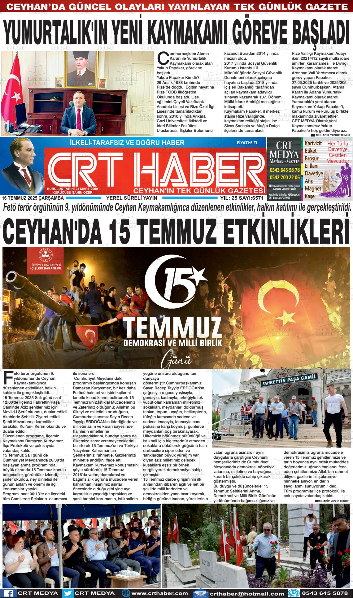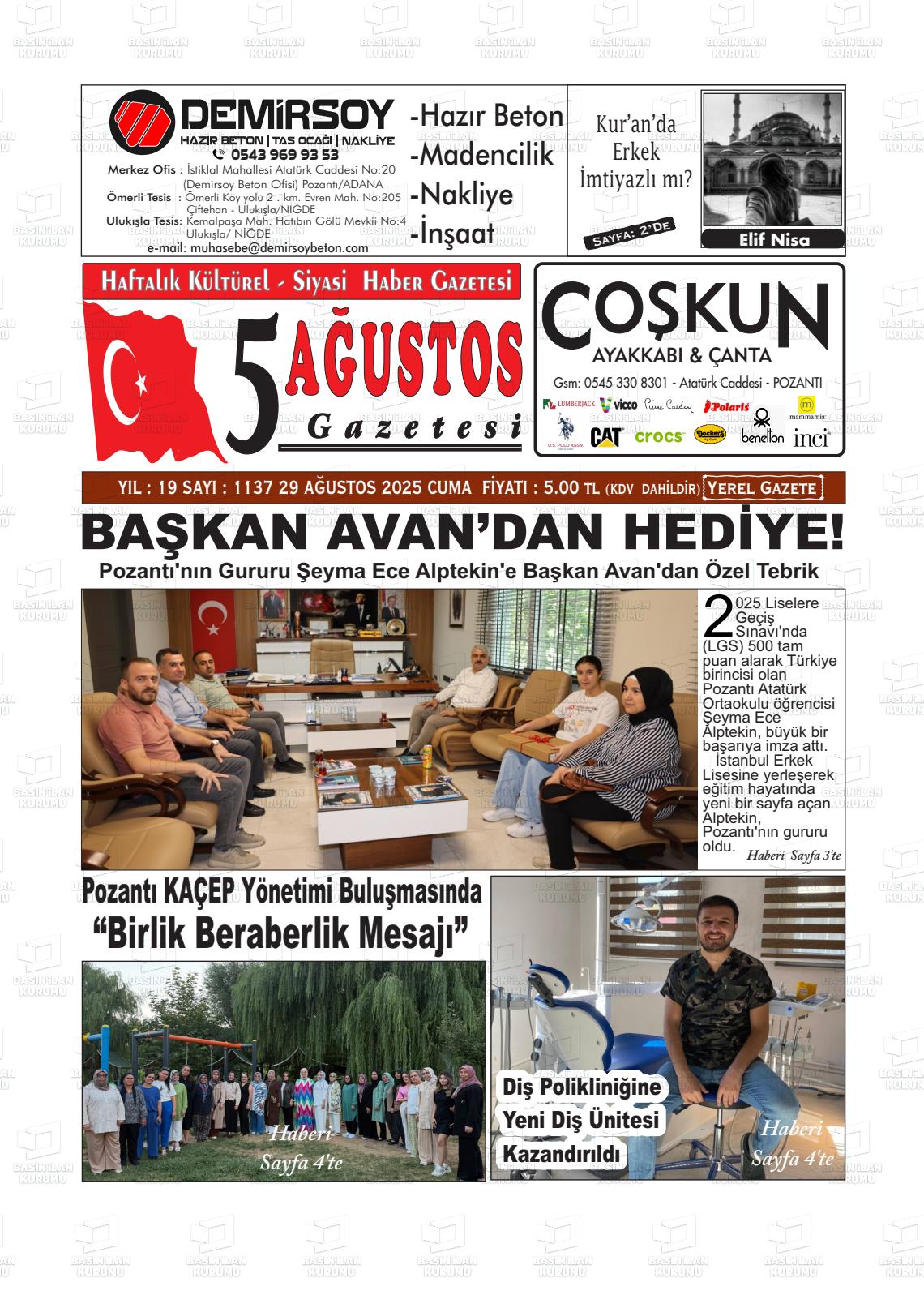 Aksaray Yerel Gazeteleri 24 Ekim 2025, Cuma Günü Manşeti