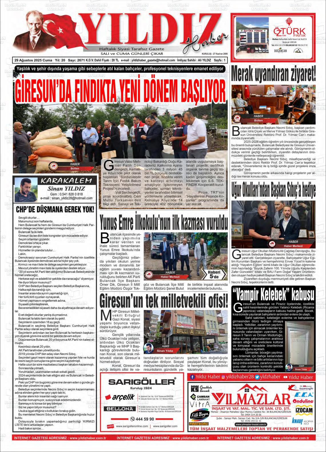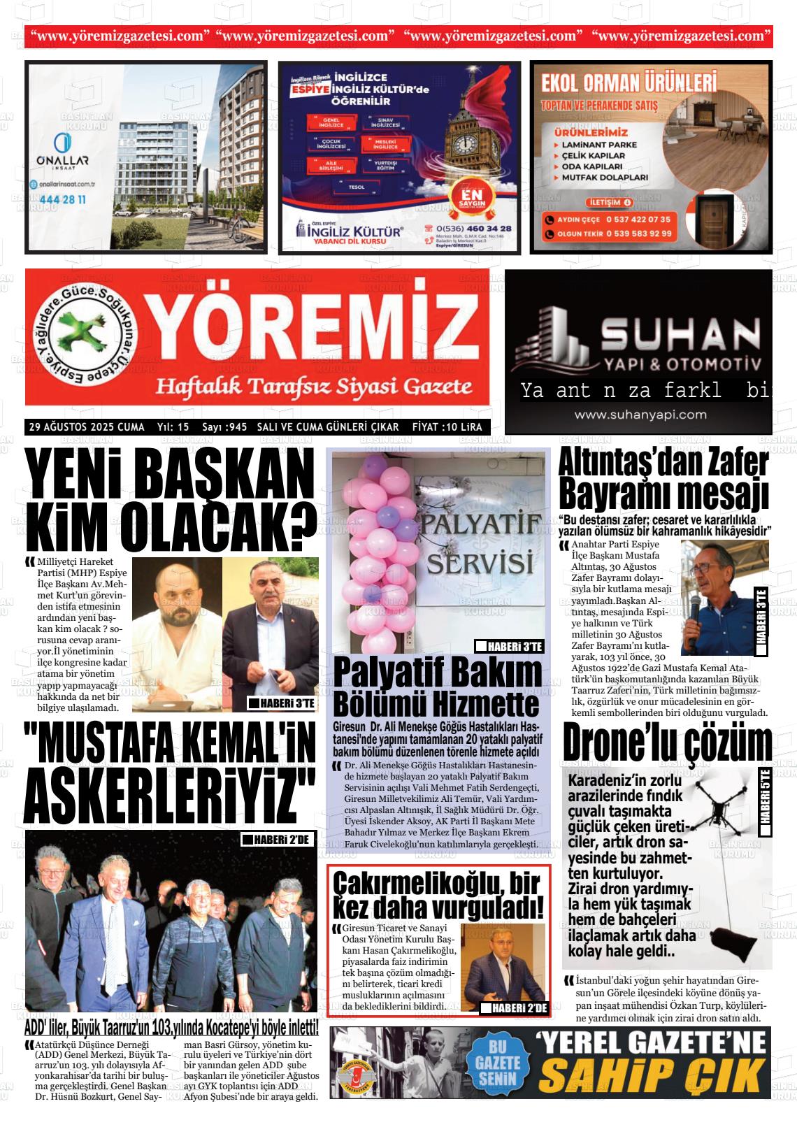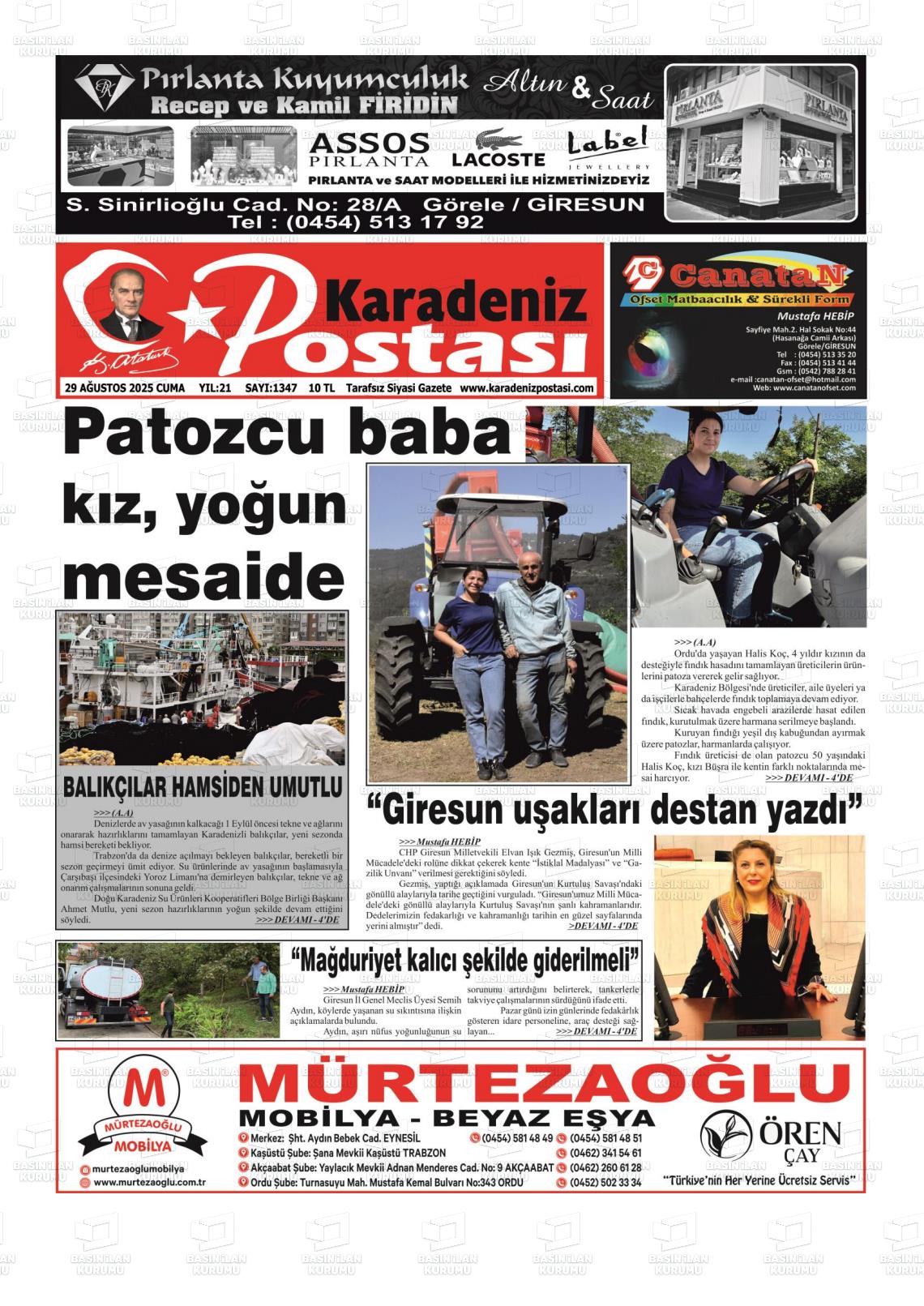Gİresun Yerel Gazeteleri 24 Ekim 2025, Cuma Günü Manşeti