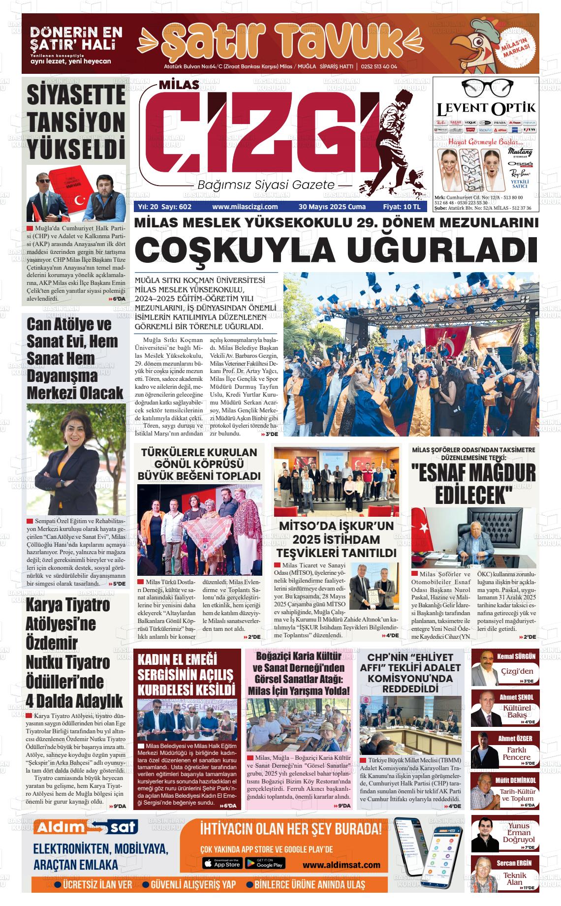 Muğla Yerel Gazeteleri 08 Aralık 2025, Pazartesi Günü Manşeti