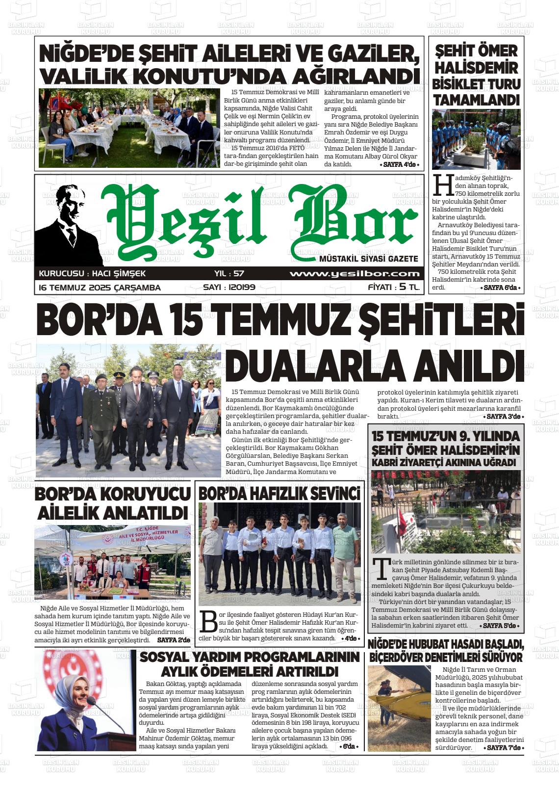 Nİğde Yerel Gazeteleri 24 Ekim 2025, Cuma Günü Manşeti