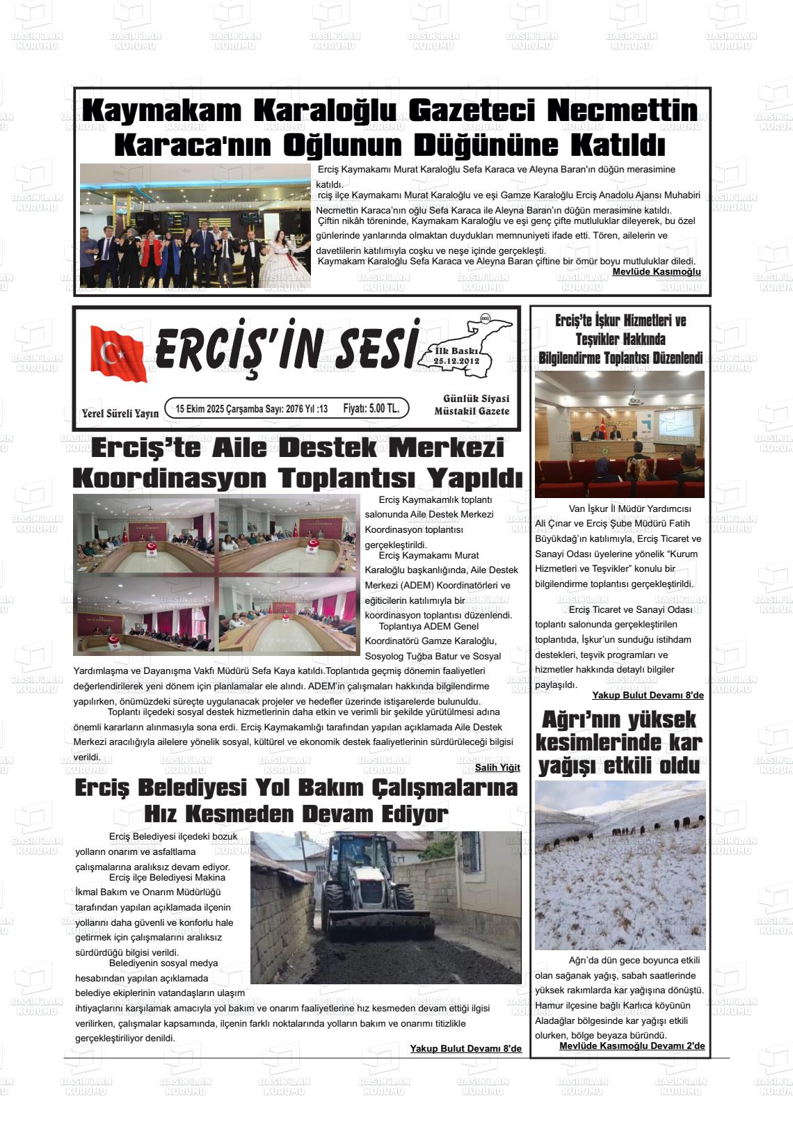 Van Yerel Gazeteleri 08 Aralık 2025, Pazartesi Günü Manşeti